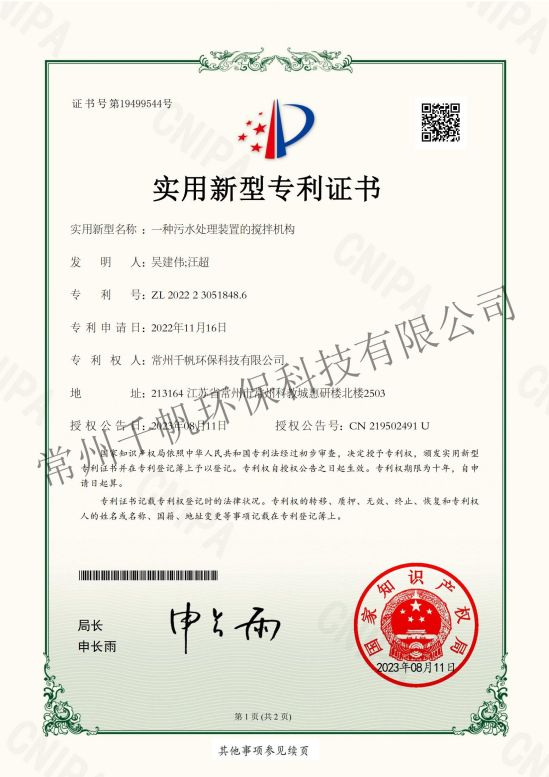 常州千帆環??萍加邢薰究偛课挥诔V菘平坛?,成立于2013年3月,是以技術研發和專業設計為先導、工程建設為主打的新型環保產業公司;環保工程設計資質、總承包資質、安全生產許可證等資質齊全。公司2017年被評定為國家高新技術企業,也是上海股權交易中心掛牌企業(企業代碼203109),公司在環保領域技術力量雄厚。公司下設常州千帆環境工程設計院有限公司,并和常州大學共建一座環境工程實驗室,和中國科學院成都化學研究所、南京理工大學、常州大學、江南大學等高校保持長期的產學研合作。經過6年的發展,公司在常州及周邊地區完成了近500家“三廢”處理工程,在廢物治理領域具備了成熟的技術條件、積累了豐富的工程經驗。